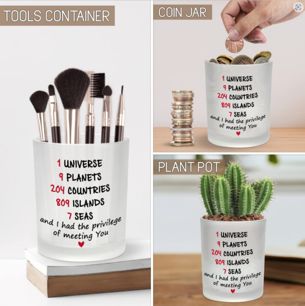 – Thickened glass jar that retains heat and is printed with love phrases – a lovely decor piece for weddings, Valentine’s Day, birthdays, etc.