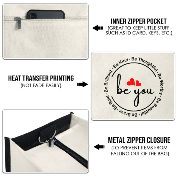 Be You – 13oz Tote Bag – Gifts For Women – Canvas Tote Bag With Zipper