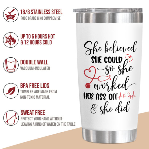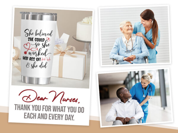 Our 20oz stainless steel tumbler makes an excellent gift for nurse who appreciate convenience, durability, and style. Its unique features, such as the spill-proof lid and double-walled insulation, make it a practical choice for various occasions while its stylish design adds a touch of elegance to any outfit. Whether it’s for Nurse’s Day, Mother’s Day, Birthdays, Christmas, or just because, our tumbler is the perfect way to show your loved one how much you care.