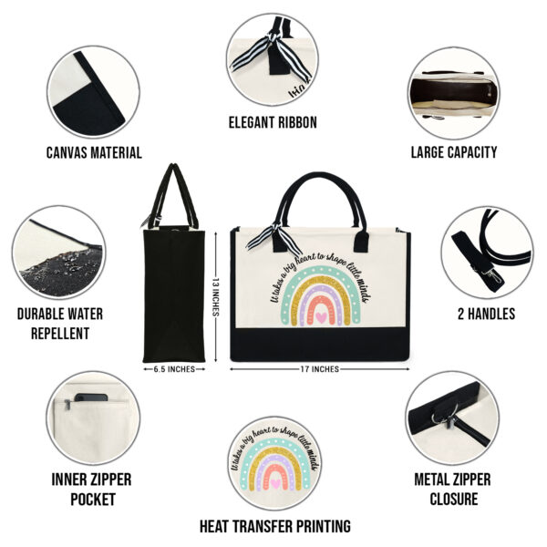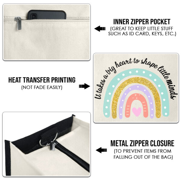 Teacher Appreciation Gifts – 13oz Tote Bag – Rainbow Teacher – Canvas Tote Bag With Zipper
