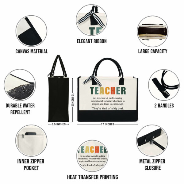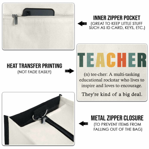 Teacher Appreciation Gifts – 13oz Tote Bag – Teacher Noun – Canvas Tote Bag With Zipper