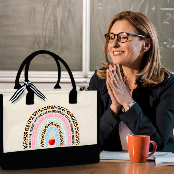 Teacher Appreciation Gifts, Teachers Day Gifts, Teacher Tote Bag 13oz Canvas Tote Bag With Zipper