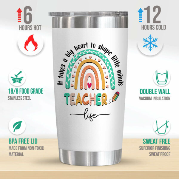 Our 20oz stainless steel tumbler makes an excellent gift for teacher who appreciate convenience, durability, and style. Its unique features, such as the spill-proof lid and double-walled insulation, make it a practical choice for various occasions while its stylish design adds a touch of elegance to any outfit. Whether it’s for Teacher’s Day, Mother’s Day, Birthdays, Christmas, or just because, our tumbler is the perfect way to show Teacher how much you care.
