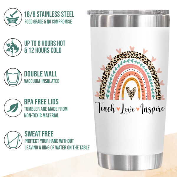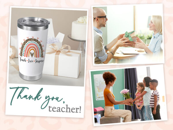 Our 20oz stainless steel tumbler makes an excellent gift for teacher who appreciate convenience, durability, and style. Its unique features, such as the spill-proof lid and double-walled insulation, make it a practical choice for various occasions while its stylish design adds a touch of elegance to any outfit. Whether it’s for Teacher’s Day, Mother’s Day, Birthdays, Christmas, or just because, our tumbler is the perfect way to show Teacher how much you care.