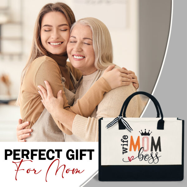 Wife Mom Boss – 13oz Tote Bag – Gifts For Mom. Wife – Canvas Tote Bag With Zipper