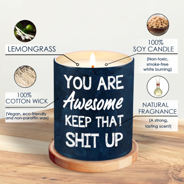- Made from a natural soy wax blend with premium cotton wicks and custom fragrance oils.